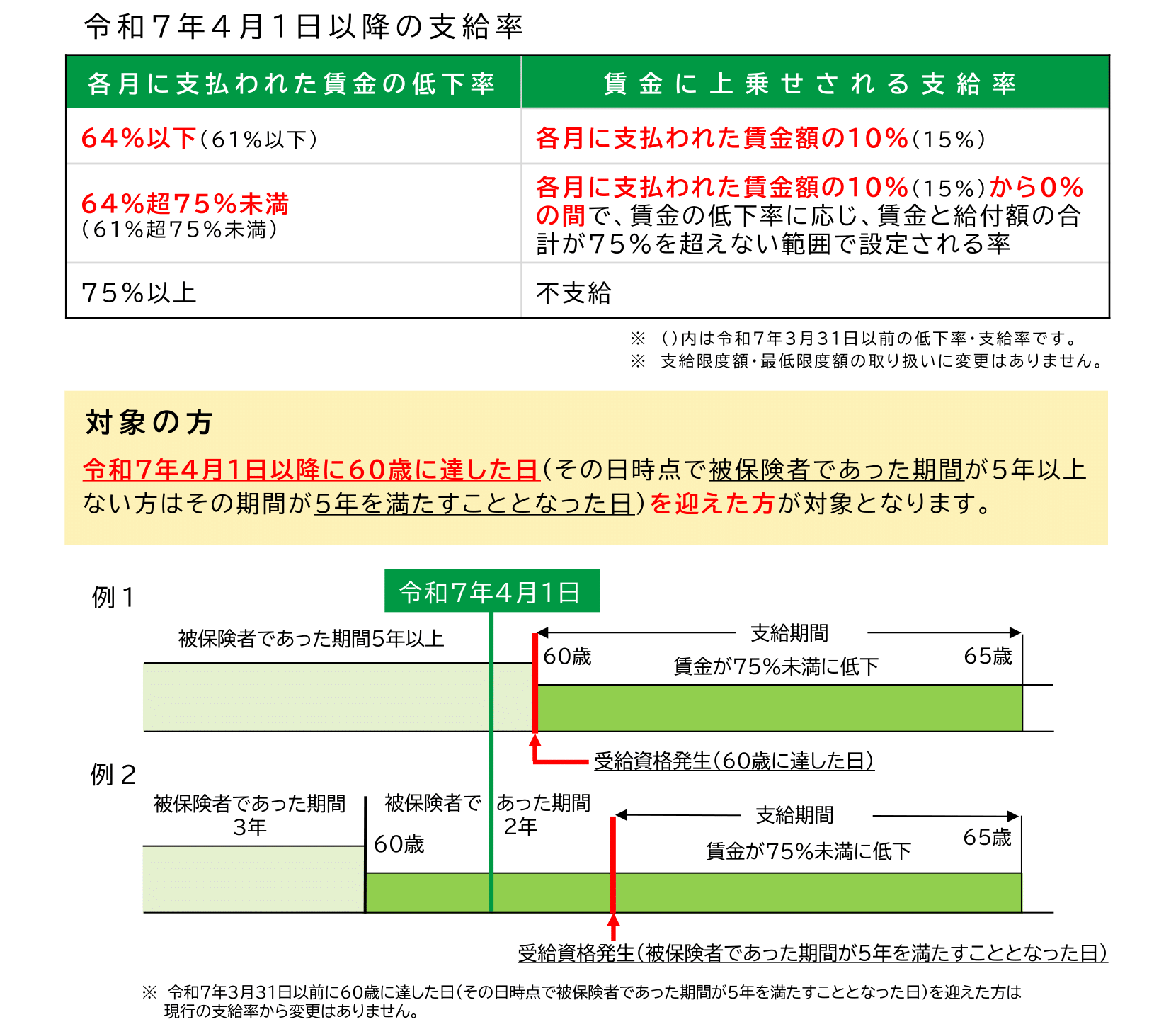 『出典:厚生労働省 令和7年4月1日から高年齢雇用継続給付の支給率を変更』